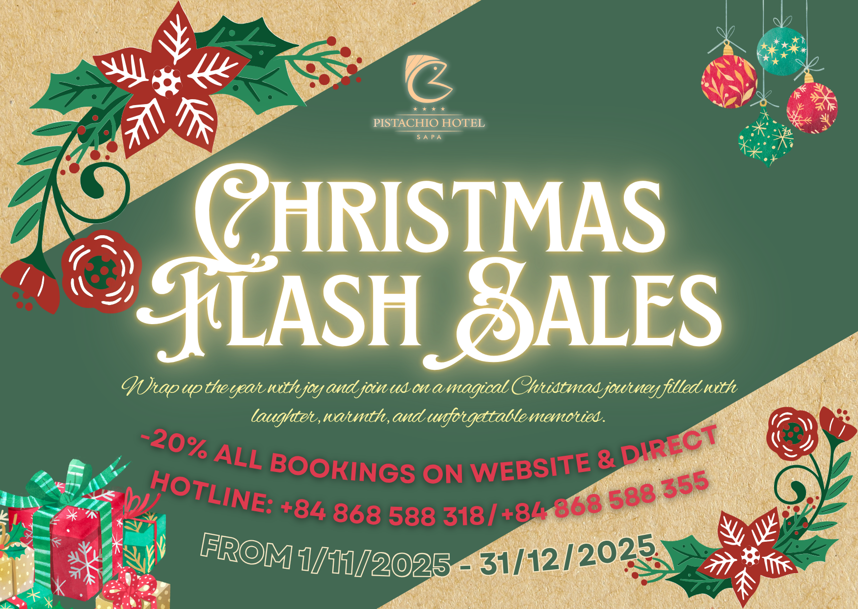 Located on Thac Bac Street in the middle of the town, Pistachio Hotel Sapa is literally an oasis in the heart of Sapa, overlooking the spectacular view of majestic Hoang Lien Son mountains and the poetic Muong Hoa valley from brilliant sunrise to magnificent sunset. All you need is to open the balcony door, let the clouds pour into your room and you will be able to touch the “fairyland”, at the same time experience the distinctive appeals of this land.